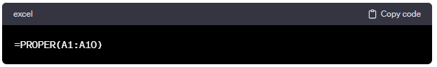 PROPER関数は一つのセルだけでなく、複数のセルを一括で変換することも可能です。例えば、セルA1からA10までの範囲に入力されたテキストを一括で変換する場合は、次のような式を使用します。